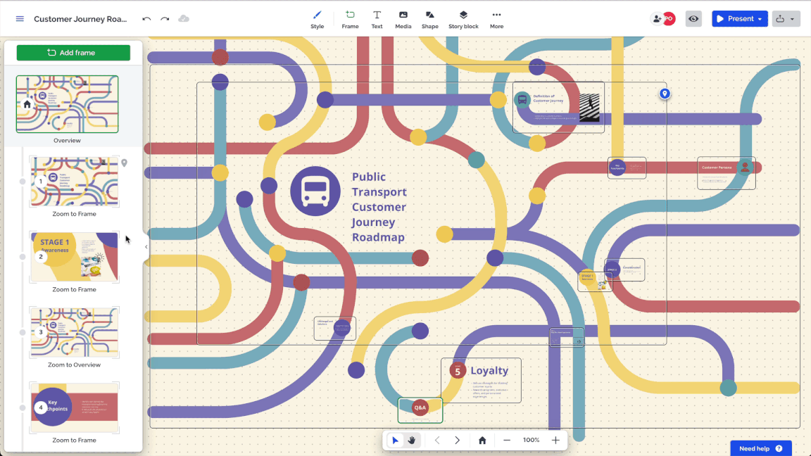 Pitch is designed for teamwork. Several people can work on the same presentation, leave comments, and edit slides together.