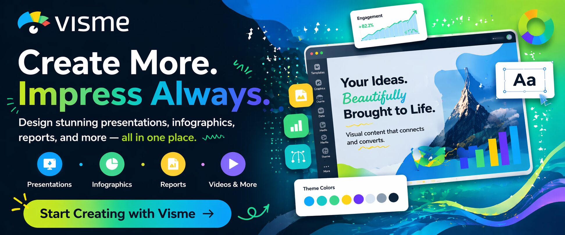 Visme is one of the most interesting tools on this list because it is not just a presentation maker.
