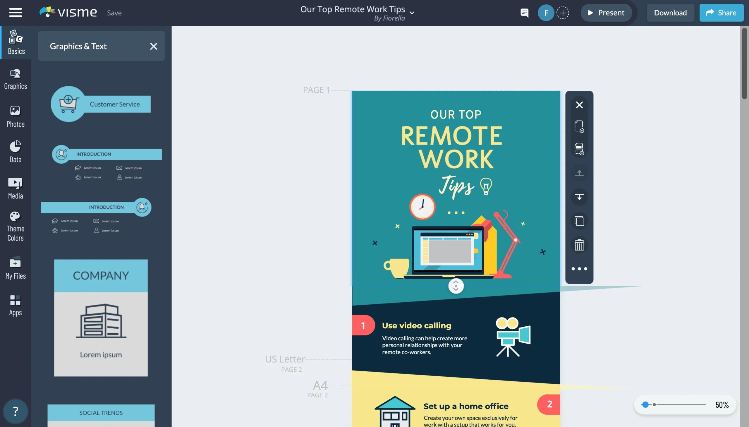 The downside is that Visme can feel overwhelming at first because there are so many options.